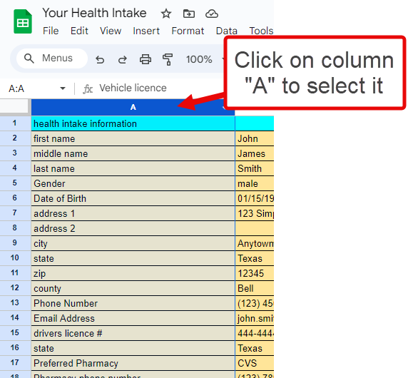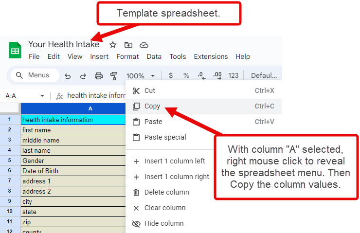 12) When filling out a medical portal intake form, copy and paste the cell values into the form fields to avoid typing each value separately.